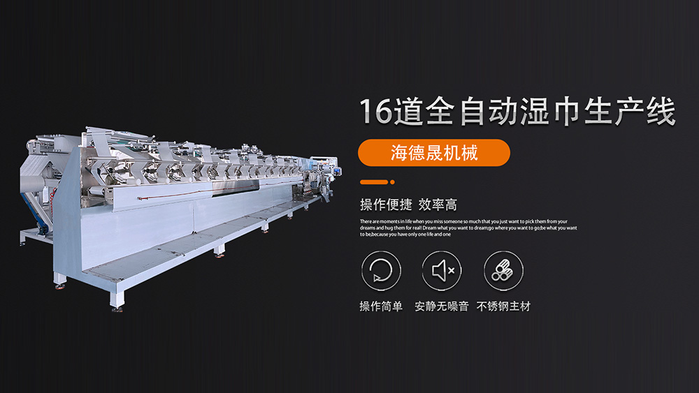 全自動(dòng)16道濕巾機(jī)是生產(chǎn)30-120片濕巾的設(shè)備,可生產(chǎn)嬰兒濕巾、護(hù)膚濕巾、廚房